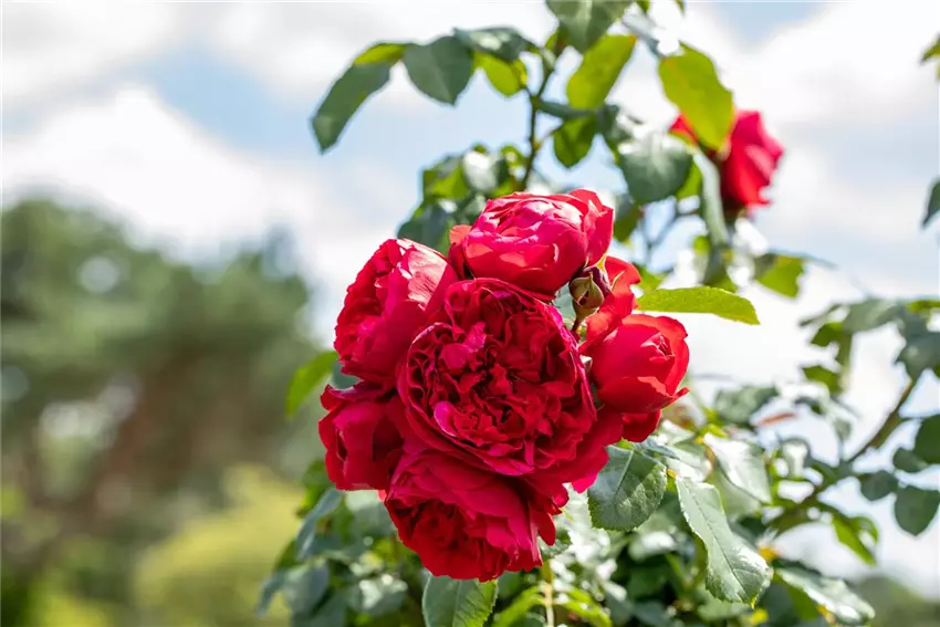 Kletterrose, rot Bei der Gartengestaltung kommt es immer ganz auf den eigenen Geschmack an. Wer Rosen kaufen und damit den eigenen Garten oder Balkon gestalten will, der kann nicht nur die unterschiedlichsten Rosen kaufen, sondern auch die passenden Begleitpflanzen. Und damit lassen sich dann die unterschiedlichsten Gärten gestalten. Denn Rosen passen nicht nur in den klassischen Rosengarten, sondern sind auch ein Muss in jedem Bauerngarten und auch ein Naturgarten wird mit Wildrosen noch ein bisschen glamouröser. Oder wie wäre es mit Duftrosen in Kombination mit Salbei und Lavendel? Die passenden Stauden bringen die besonderen Rosen noch besser zur Geltung, stehlen ihnen aber niemals die Show. So wird jeder Garten zum absoluten Hingucker!