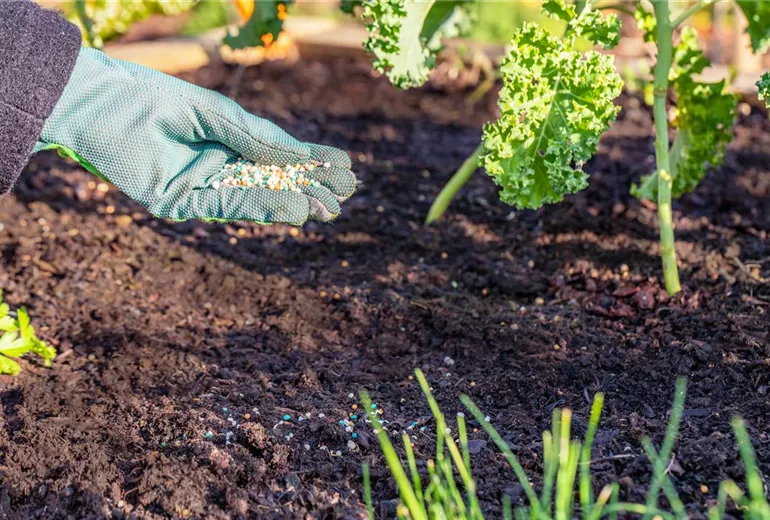 Dabei ändert sich der Nährstoffgehalt im Boden ständig. Vor allem durch die Pflanzen selbst. Zum Glück haben jedoch nicht alle Pflanzen den gleichen Nährstoffbedarf. Es gibt sogar Pflanzen, die dem Boden Stoffe zuführen, die andere wiederum zum Wachstum benötigen. So kommt es, dass zum Beispiel in der Landwirtschaft durch wechselnde Kulturen der Nährstoffverlust im Boden ausgeglichen werden kann, das können Sie durch Gründüngung auch im Nutzgarten umsetzen. Im Ziergarten jedoch sollen manche Pflanzen viele Jahre am gleichen Ort stehen bleiben. Genau das ist der Grund, warum wir immer wieder durch Düngung Nährstoffe in den Boden einbringen müssen.