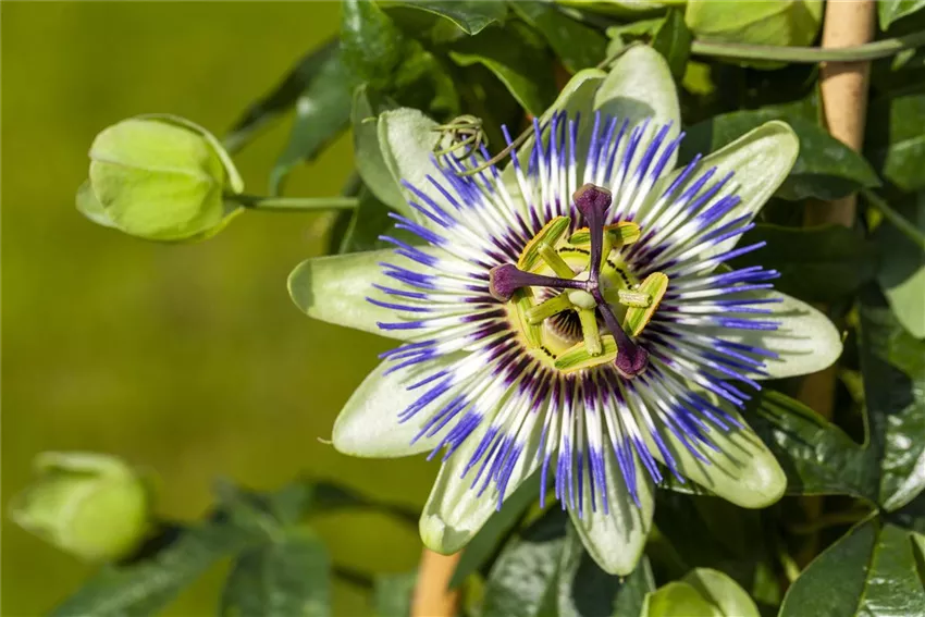 Wenn Sie noch für eine entsprechende Rankhilfe von Anfang an sorgen und einen hellen bis sonnigen Standort wählen, können Sie ab Juni mit den schönen Blüten und in milden Gegenden auch mit etwas Glück auf Früchte hoffen. In einigen Fällen ist es jedoch möglich, dass die Passionsblume erst ab dem zweiten Jahr blüht.